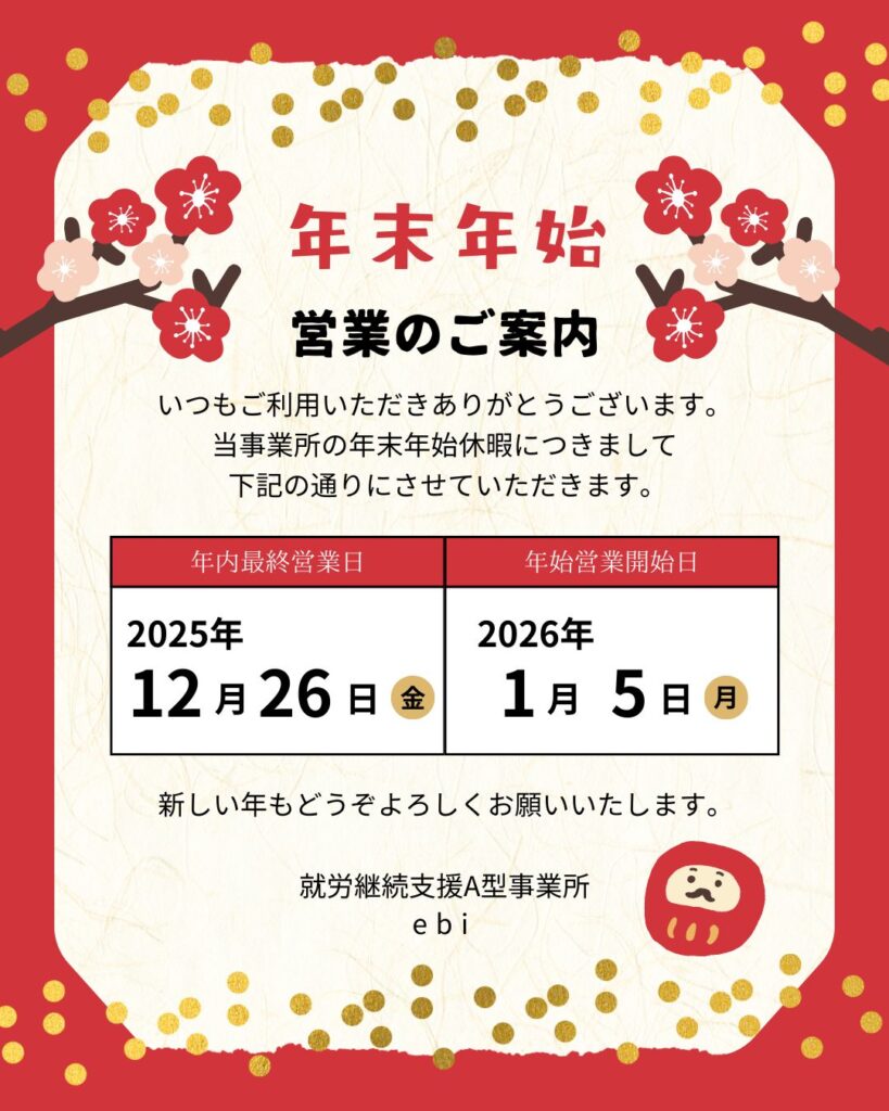 年末年始営業日のおしらせ